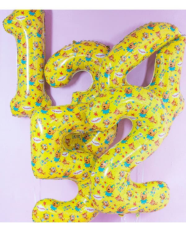 Главная страница » Магазин » Шарики из фольги » Цифры » Шар Цифра Три Кота 86 см